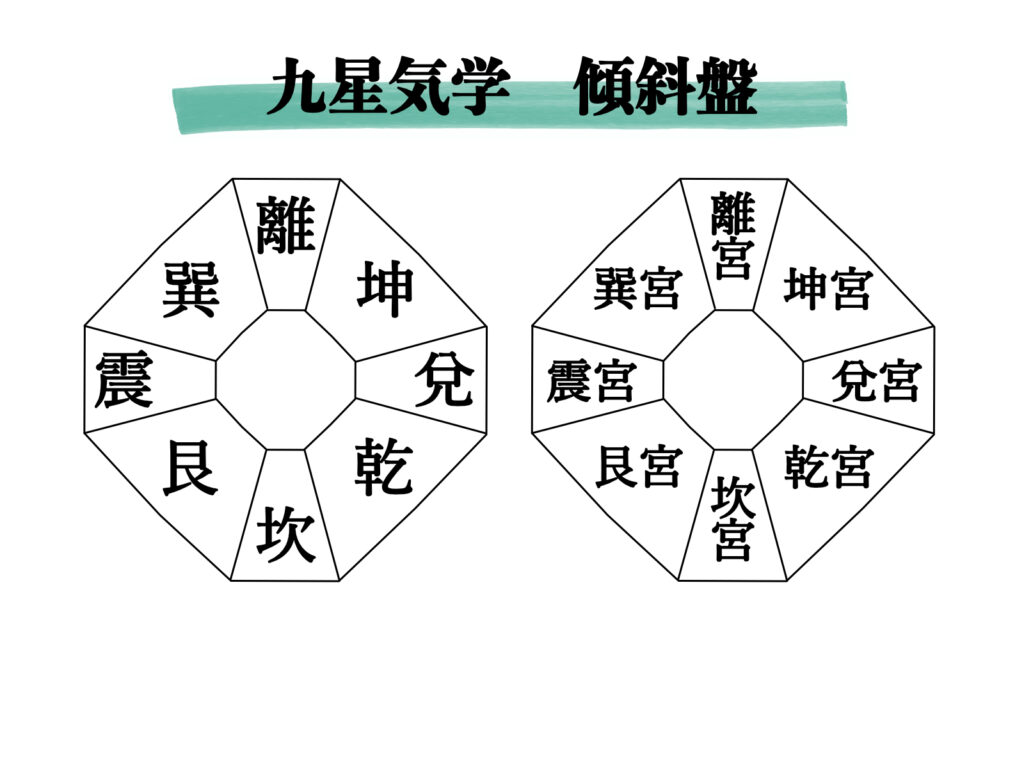 定位盤に八卦を配したもの それぞれの方位に、”宮(ぐう)”を持っている